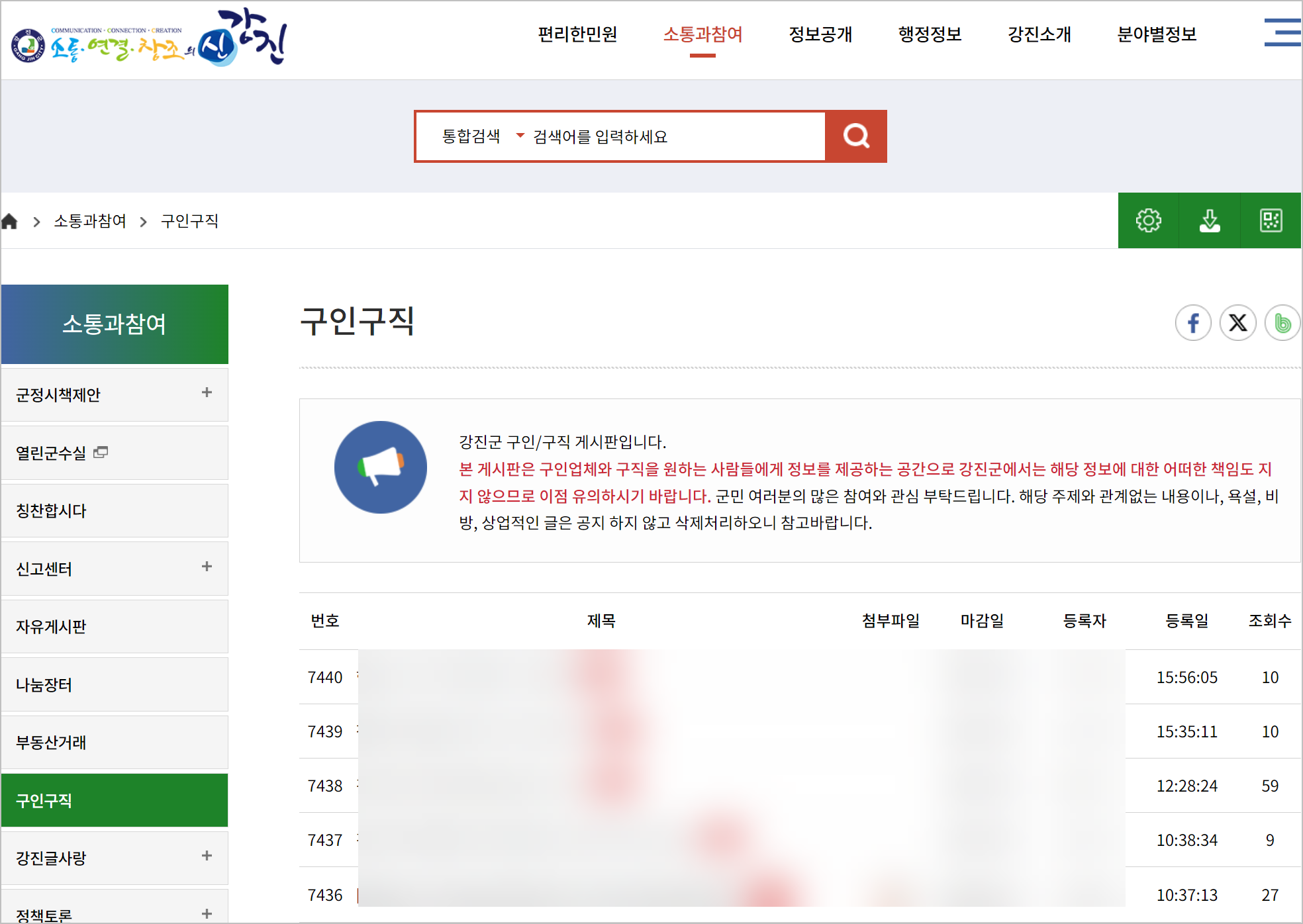 강진군청에서는 구인구직을 쉽게 확인할 수 있도록 홈페이지를 운영하고 있습니다. 많은 지자체가 구인구직 정보를 워크넷 등 외부 사이트로 이관하는 경우가 있지만, 자체적으로 구인구직 페이지를 유지하고 있습니다. 주민들이 군내에서 제공되는 다양한 일자리 정보를 쉽게 찾을 수 있도록 돕기 위함입니다.