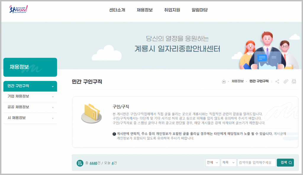 계룡시청 웹사이트 역시 여러 커뮤니티가 형성되어 있고, 다양한 기능을 가진 플랫폼들이 마련되어 있습니다. 특히 이번 포스팅에서 소개할 구인구직 게시판은 많은 사람들이 활발하게 이용하고 있는 곳 중 하나입니다.