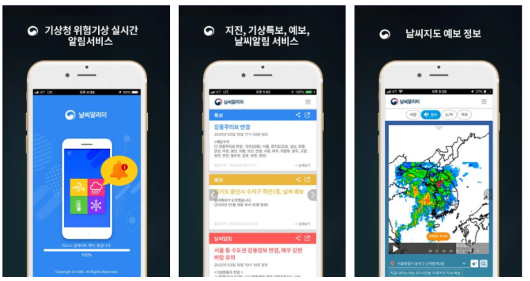 위 링크를 통해 다운로드 할 수 있습니다. 이 앱은 안드로이드와 아이폰 버전이 있으며, 단순 날시 뿐만아니라 사용자의 위치를 기반으로 지진과 특보 등의 위험 정보를 제공하는 맞춤형 알림 서비스입니다.