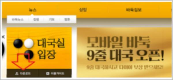 로그인 후 위 화면에 보이는 것 처럼 대국실 입장 아래에 있는 '다운로드' 옵션을 선택하면 게임 파일이 다운로드되며, 이를 실행하여 프로그램을 다운로드할 수 있습니다.
