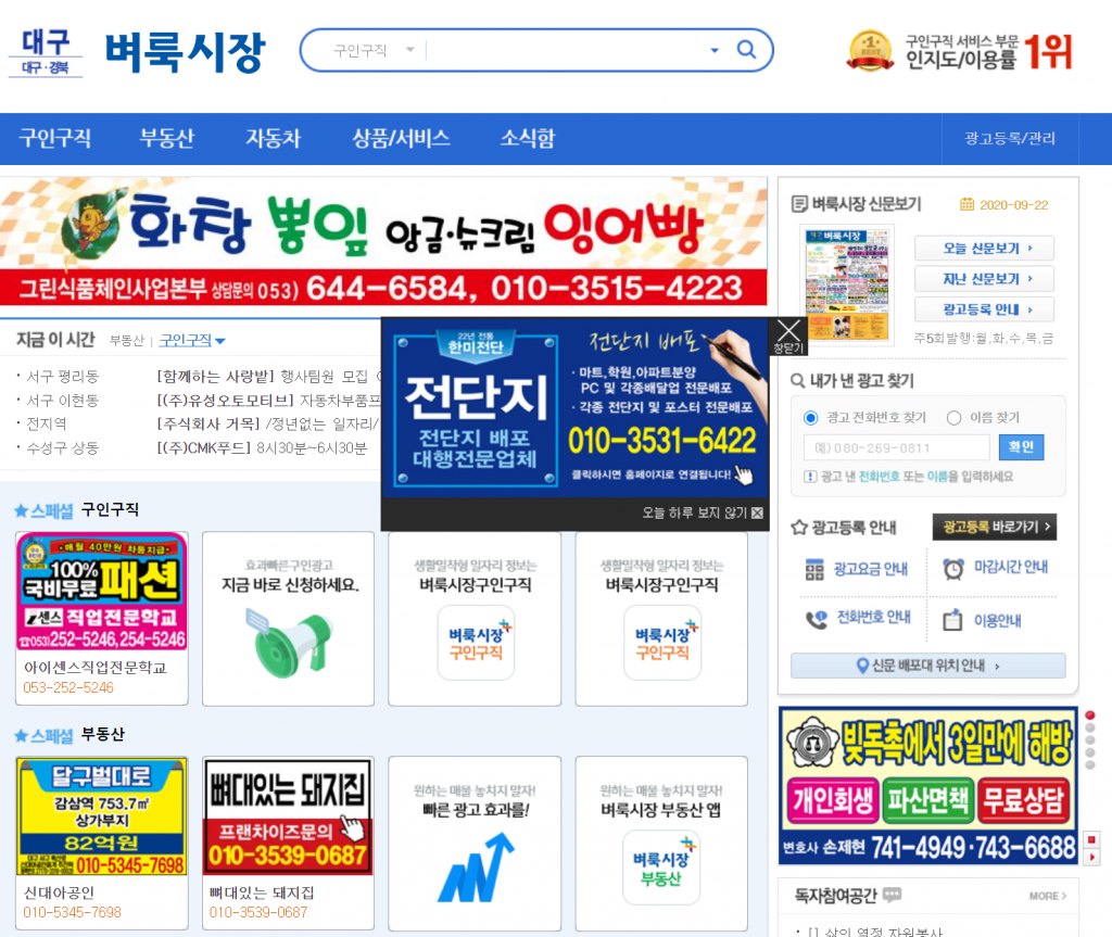 또한 가판대에 항상 놓여있었는데 이제는 골목 어귀든 사람이 많이 다니는 곳이든 신문을 찾는 것이 너무 힘듭니다. 아무도 찾지 않기 때문에 그런 것 같습니다. 그러나 완전히 망했을까요? 그렇지 않습니다. 벼룩시장에 있는 줄광고들이 그대로 인터넷으로 이동하였습니다. 바로 오늘 소개할 '대구벼룩시장 신문 홈페이지'처럼 말이지요.