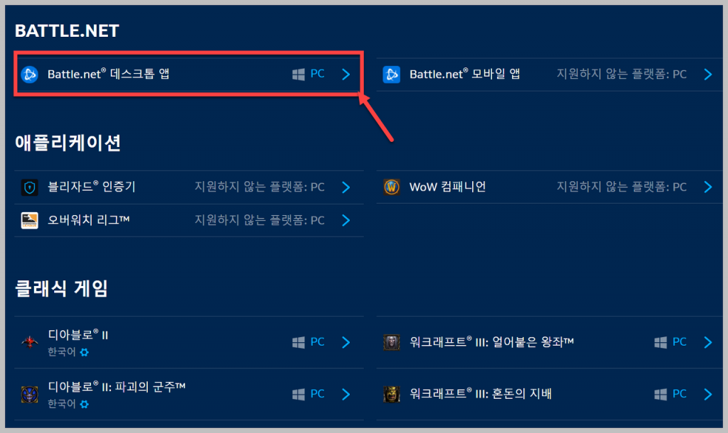 블리자드 다운로드: https://download.battle.net/ko-kr/desktop