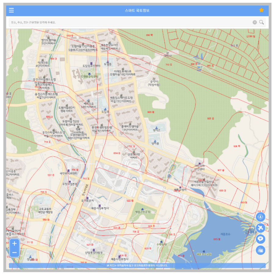 위 화면은 PC에서 본 스마트국토정보의 화면입니다. 볼 수는 있지만 스마트폰에서 보는 것이 더 편리할 것 같다는 생각이 듭니다.