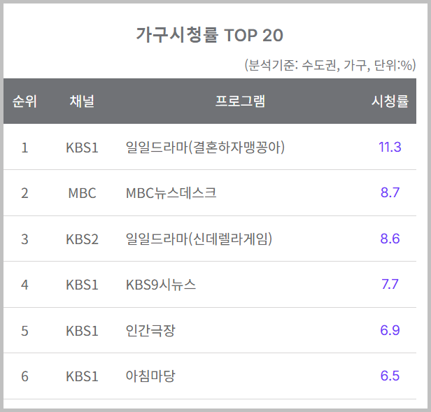 장수 프로그램 우리나라에는 꽤나 많이 있습니다. 해외에는 더 많을지도 모르지만, 우리나라도 꽤나 많습니다. 그중 하나는 KBS에서 하고 있는 아침마당입니다. 이것은 주부를 대상으로 하는 것입니다. 주부가 모든일을 마치고 쉬는 타이밍인 시간에 방송을 시작합니다. 그러다보니까 꽤나 시청률이 높습니다.
