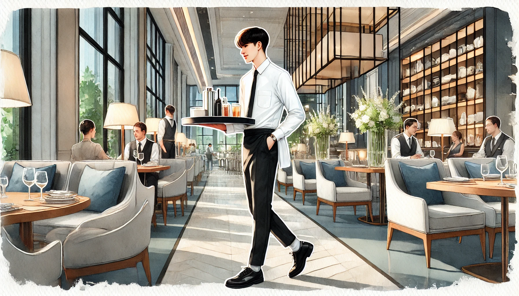 호텔 아르바이트는 주로 서빙, 뷔페, 연회 관련 일을 합니다. 식사 시간대에는 서빙을 나가거나 그릇을 치우고, 플레이트를 다시 채워넣습니다. 식사 시간대 이외의 시간에는 주로 기물 핸들링(설거지된 접시, 잔, 수저, 포크, 나이프 등의 물기 닦아내기)을 합니다.