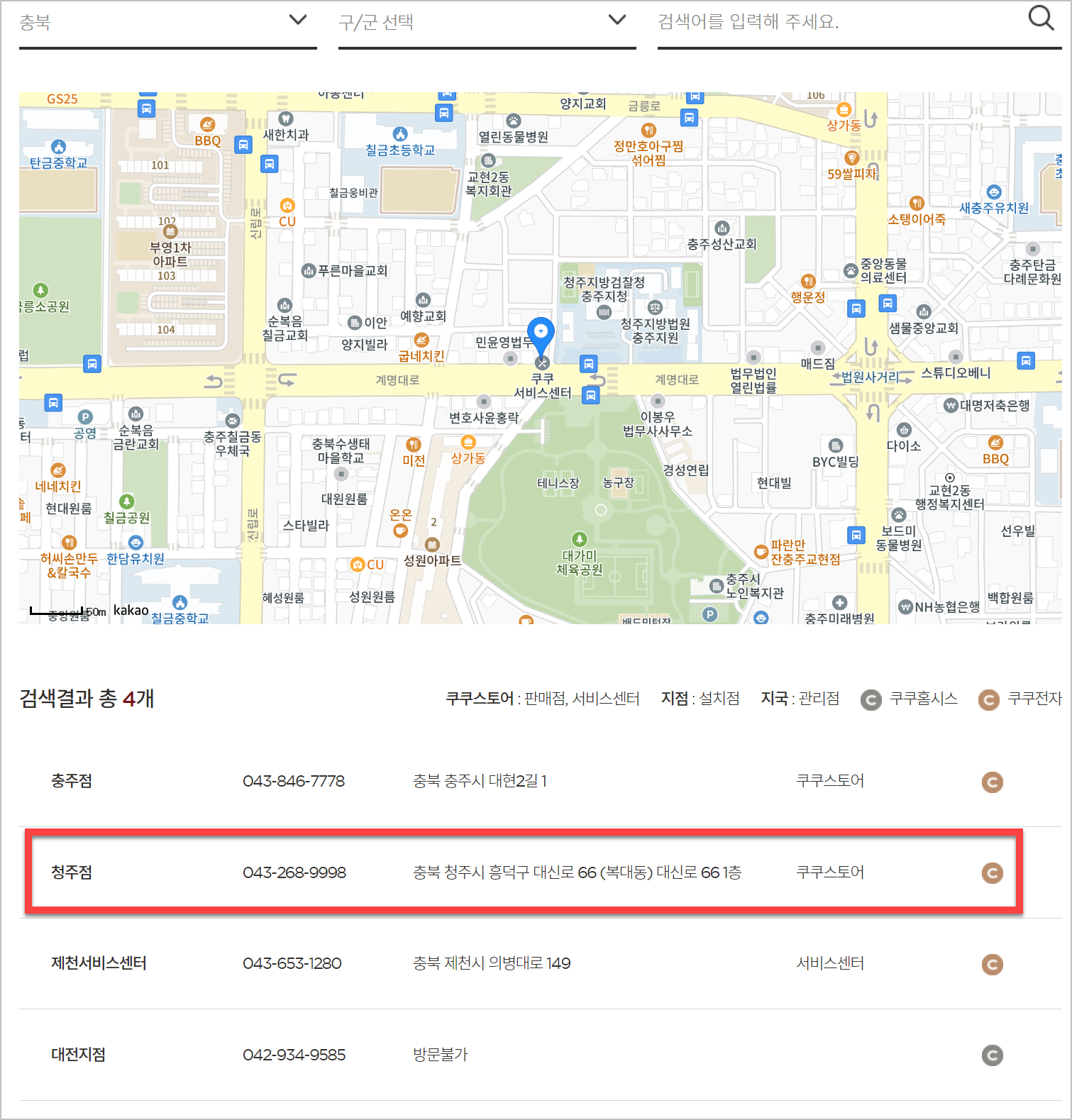 청주쿠쿠서비스센터 안내
