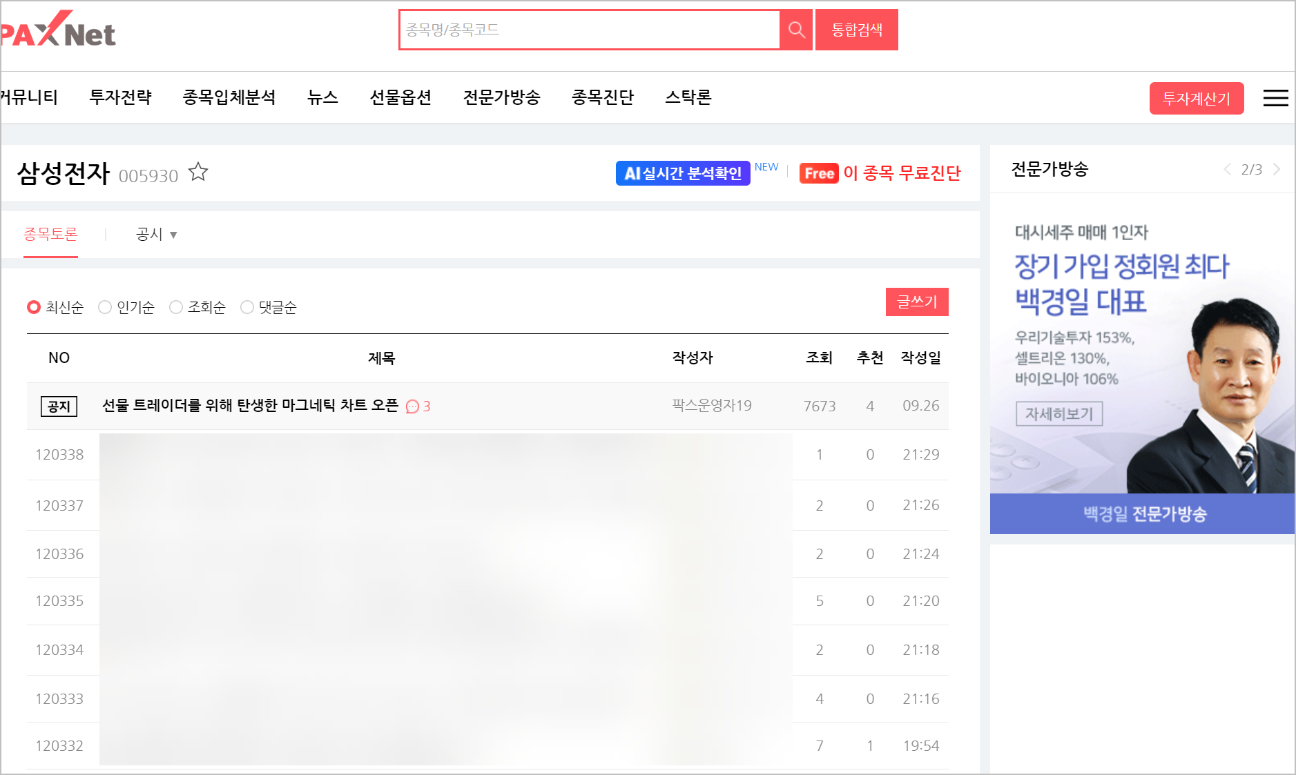 팍스넷의 토론실은 주식 종목별로 분류되어 있어, 투자자들이 관심 있는 종목에 대한 것을 쉽게 확인할 수 있습니다.